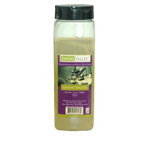 Jansal Valley ground epazote, 12 ounce. This pungent spice is commonly found in Mexican cuisine. It has a strong taste and is used in soups, tamales, enchiladas and quesadillas. Use in bean dishes, quesadillas, enchiladas. Store in a cool, dry place.