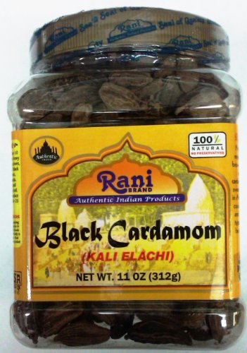 PRODUCT INFORMATION Native to the Eastern Himalayan regions, Black Cardamom is a large brown pod containing highly aromatic seeds. Unlike green pods this cardamom is rarely used in deserts and sweet dishes. It is a staple spice used in African, Indian and Middle Eastern cooking. It has a unique smoky flavor and is used in Basmati rice and stew type dishes. Black cardamom should be used sparingly due to its intense and rich flavor. RECIPE: Biriyani Prep-time: 10 min. Cooking time: 25 min. Serving size: 6 Heat level: Medium 2 ¾ cup water 2 cups Rani Basmati Rice 3 tbsp. vegetable oil 2 Rani Clove Whole 1 bay leaf 2 Rani Black Cardamom Pods 1 Rani Cinnamon Whole 1 tsp. salt 2 tsp. Rani Biryani Masala Soak rice in water for 10 minutes. Heat oil in heavy sauce pan and add cloves, cinnamon, bay leaf, black cardamom. Stir in rice, salt and biryani masala. Sauté for a minute and add water. Bring to boil. Cover tightly and reduce heat to low. Cook for 25 minutes. PRODUCT SPECIFICATIONS Net Wt. 11oz (312gms) Product of India Alternate Name (Indian) Kali Elachi Packaging: Plastic Bottle Product Type: Seeds Ingredients: Black Cardamom