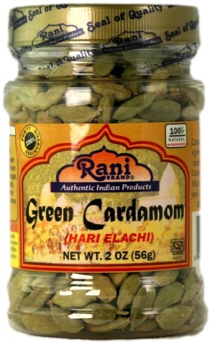 PRODUCT INFORMATION Cardamom is native to the forest of South India, where it grows wild. Second only to the spice saffron in value, cardamom is one of the worlds most expensive spice. Cardamom can enhance both sweet and savory dishes. It has been important in Indian cuisine for thousands of years, being a useful ingredient in sumptuous curries to adding a camphoric flavor to Indian masala chai. RECIPE: Savory Rice Pudding Cooking Time: 25 minutes Prep time: 10 minutes Serving size: 4 1 cup Rani Basmati Rice 3 cups milk ½ cup sugar ¼ cup raisins 4 Rani Green Cardamom Pods ¼ cup chopped almonds 1 pinch saffron (optional) Soak rice with water for 10 minutes. In a large sauce pan bring 3 cups milk to boil. Drain rice and add to milk. Add sugar, raisins, cardamom, almonds, and saffron. Let rice cook for 20 minutes or until rice is done. Serve cool or warm. PRODUCT SPECIFICATIONS Net Wt. 2oz (56gms) Product of Guatemala Alternative Name (Indian) Hari Elachi Packaging: Plastic Bottle Product Type: Pods Ingredients: Jumbo Green Cardamom