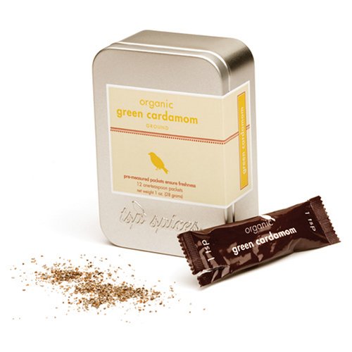 Each tin contains 12 one-teaspoon packets of ground organic green cardamom